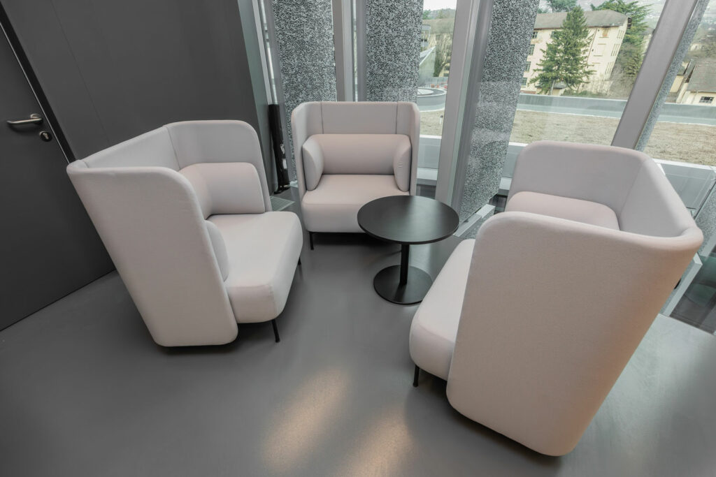 All’interno del progetto sono stati inseriti diversi prodotti Sitlosophy, azienda specializzata nella progettazione di divani e sedute modulari contract e di sedie e poltroncine per spazi pubblici, progettati e realizzati secondo la tradizione del made in Italy. Il risultato è un ambiente coerente, elegante e funzionale, capace di supportare le diverse modalità di utilizzo degli spazi di lavoro.