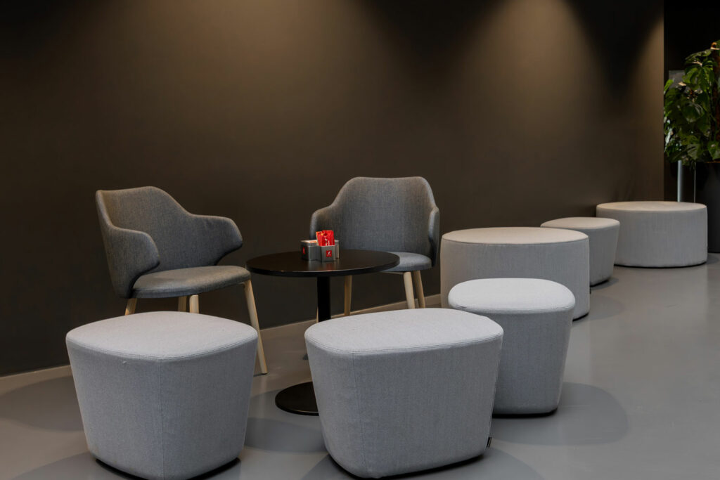 Accanto alle aree lounge e agli spazi dedicati alla conversazione informale, il progetto include anche zone di attesa e punti di incontro che richiedono soluzioni di seduta eleganti e versatili.